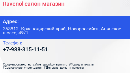 Ravenol, салон-магазин по адресу 353912, Краснодарский край, Новороссийск, Анапское шоссе, 49/1 в дальнейшем Организация, размещена в следующих категориях: