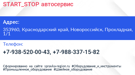 START_STOP, автосервис по адресу 353960, Краснодарский край, Новороссийск, Прохладная, 1/1 в дальнейшем Организация, размещена в следующих категориях: