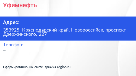 Уфимнефть по адресу 353925, Краснодарский край, Новороссийск, проспект Дзержинского, 227 в дальнейшем Организация, размещена в следующих категориях: