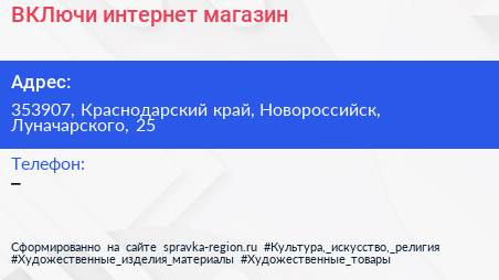 ВКЛючи, интернет-магазин по адресу 353907, Краснодарский край, Новороссийск, Луначарского, 25 в дальнейшем Организация, размещена в следующих категориях: