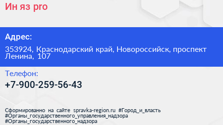Ин-яз.pro по адресу 353924, Краснодарский край, Новороссийск, проспект Ленина, 107 в дальнейшем Организация, размещена в следующих категориях: