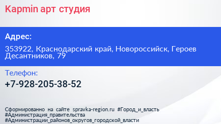Kaрmin, арт-студия по адресу 353922, Краснодарский край, Новороссийск, Героев Десантников, 79 в дальнейшем Организация, размещена в следующих категориях: