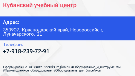 Кубанский, учебный центр по адресу 353907, Краснодарский край, Новороссийск, Луначарского, 21 в дальнейшем Организация, размещена в следующих категориях: