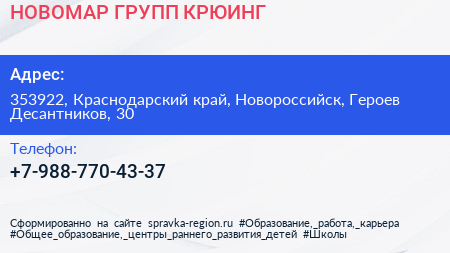 НОВОМАР ГРУПП-КРЮИНГ по адресу 353922, Краснодарский край, Новороссийск, Героев Десантников, 30 в дальнейшем Организация, размещена в следующих категориях: