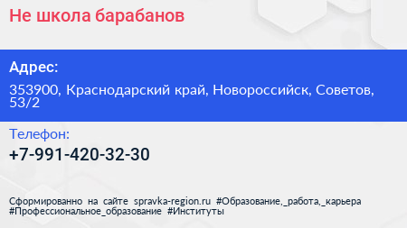 Не школа барабанов по адресу 353900, Краснодарский край, Новороссийск, Советов, 53/2 в дальнейшем Организация, размещена в следующих категориях: