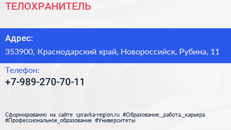 ТЕЛОХРАНИТЕЛЬ по адресу 353900, Краснодарский край, Новороссийск, Рубина, 11 в дальнейшем Организация, размещена в следующих категориях: