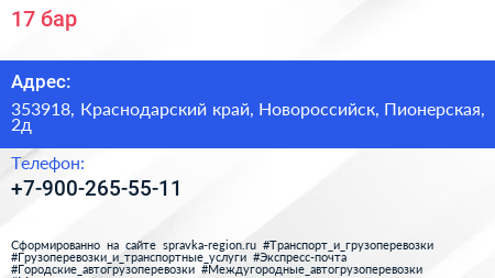 17, бар по адресу 353918, Краснодарский край, Новороссийск, Пионерская, 2д в дальнейшем Организация, размещена в следующих категориях: