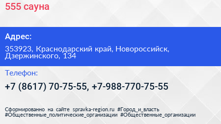 555, сауна по адресу 353923, Краснодарский край, Новороссийск, Дзержинского, 134 в дальнейшем Организация, размещена в следующих категориях: