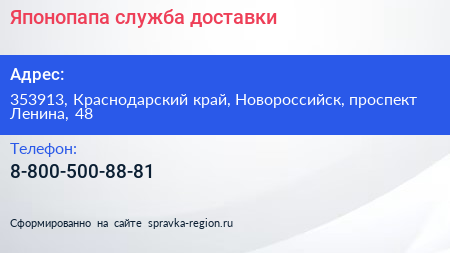 Японопапа, служба доставки по адресу 353913, Краснодарский край, Новороссийск, проспект Ленина, 48 в дальнейшем Организация, размещена в следующих категориях: