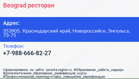 Beograd, ресторан по адресу 353905, Краснодарский край, Новороссийск, Энгельса, 73-75 в дальнейшем Организация, размещена в следующих категориях: