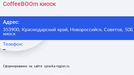 CoffeeBOOm, киоск по адресу 353900, Краснодарский край, Новороссийск, Советов, 50Б киоск в дальнейшем Организация, размещена в следующих категориях: