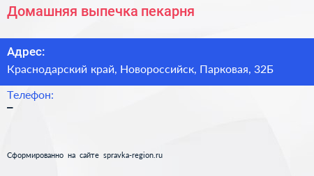 Домашняя выпечка, пекарня по адресу Краснодарский край, Новороссийск, Парковая, 32Б в дальнейшем Организация, размещена в следующих категориях: