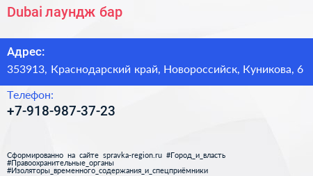 Dubai, лаундж-бар по адресу 353913, Краснодарский край, Новороссийск, Куникова, 6 в дальнейшем Организация, размещена в следующих категориях: