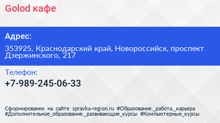 Golod, кафе по адресу 353925, Краснодарский край, Новороссийск, проспект Дзержинского, 217 в дальнейшем Организация, размещена в следующих категориях: