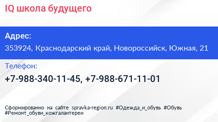 IQ, школа будущего по адресу 353924, Краснодарский край, Новороссийск, Южная, 21 в дальнейшем Организация, размещена в следующих категориях: