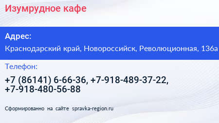 Изумрудное, кафе по адресу Краснодарский край, Новороссийск, Революционная, 136а в дальнейшем Организация, размещена в следующих категориях:
