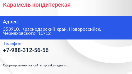 Карамель, кондитерская по адресу 353910, Краснодарский край, Новороссийск, Черняховского, 10/12 в дальнейшем Организация, размещена в следующих категориях: