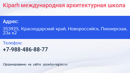 Kiparh, международная архитектурная школа по адресу 353925, Краснодарский край, Новороссийск, Пионерская, 23а к2 в дальнейшем Организация, размещена в следующих категориях: