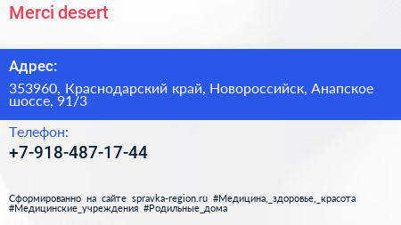 Merci desert по адресу 353960, Краснодарский край, Новороссийск, Анапское шоссе, 91/3 в дальнейшем Организация, размещена в следующих категориях: