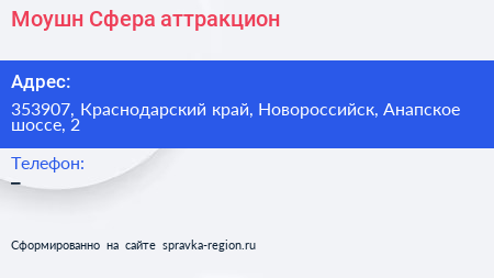Моушн Сфера, аттракцион по адресу 353907, Краснодарский край, Новороссийск, Анапское шоссе, 2 в дальнейшем Организация, размещена в следующих категориях: