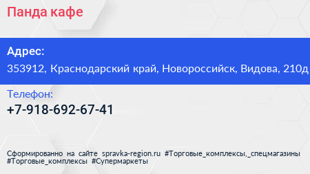 Панда, кафе по адресу 353912, Краснодарский край, Новороссийск, Видова, 210д в дальнейшем Организация, размещена в следующих категориях: