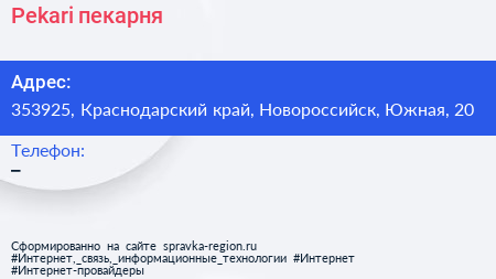 Pekari, пекарня по адресу 353925, Краснодарский край, Новороссийск, Южная, 20 в дальнейшем Организация, размещена в следующих категориях: