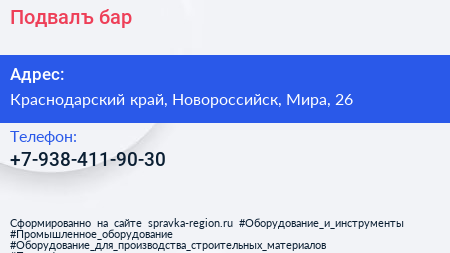 Подвалъ, бар по адресу Краснодарский край, Новороссийск, Мира, 26 в дальнейшем Организация, размещена в следующих категориях: