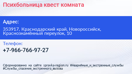 Психбольница, квест-комната по адресу 353917, Краснодарский край, Новороссийск, Краснознамённый переулок, 10 в дальнейшем Организация, размещена в следующих категориях: