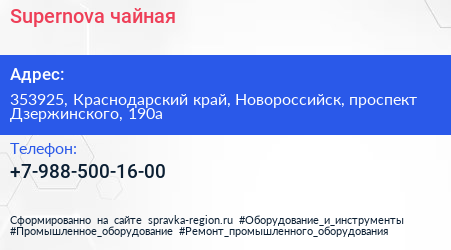 Supernova, чайная по адресу 353925, Краснодарский край, Новороссийск, проспект Дзержинского, 190а в дальнейшем Организация, размещена в следующих категориях: