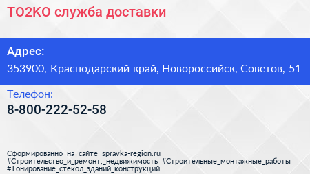 TO2KO, служба доставки по адресу 353900, Краснодарский край, Новороссийск, Советов, 51 в дальнейшем Организация, размещена в следующих категориях: