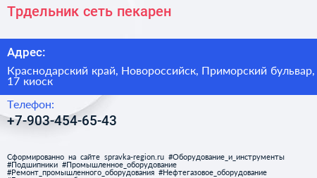 Трдельник, сеть пекарен по адресу Краснодарский край, Новороссийск, Приморский бульвар, 17 киоск в дальнейшем Организация, размещена в следующих категориях: