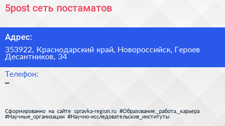 5post, сеть постаматов по адресу 353922, Краснодарский край, Новороссийск, Героев Десантников, 34 в дальнейшем Организация, размещена в следующих категориях: