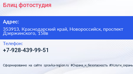 Блиц, фотостудия по адресу 353913, Краснодарский край, Новороссийск, проспект Дзержинского, 158в в дальнейшем Организация, размещена в следующих категориях: