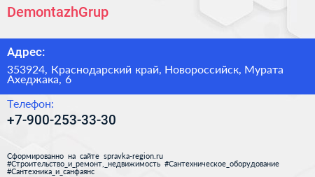 DemontazhGrup по адресу 353924, Краснодарский край, Новороссийск, Мурата Ахеджака, 6 в дальнейшем Организация, размещена в следующих категориях: