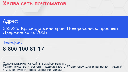 Халва, сеть почтоматов по адресу 353925, Краснодарский край, Новороссийск, проспект Дзержинского, 206Б в дальнейшем Организация, размещена в следующих категориях: