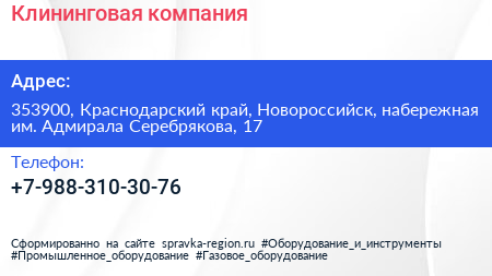 Клининговая компания по адресу 353900, Краснодарский край, Новороссийск, набережная им. Адмирала Серебрякова, 17 в дальнейшем Организация, размещена в следующих категориях: