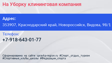 На-Уборку, клининговая компания по адресу 353907, Краснодарский край, Новороссийск, Видова, 98/1 в дальнейшем Организация, размещена в следующих категориях:
