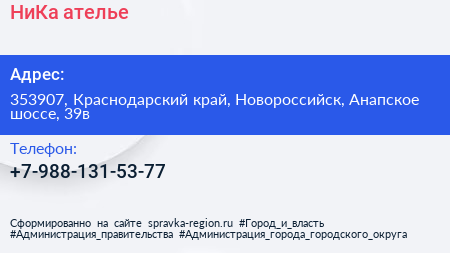 НиКа, ателье по адресу 353907, Краснодарский край, Новороссийск, Анапское шоссе, 39в в дальнейшем Организация, размещена в следующих категориях: