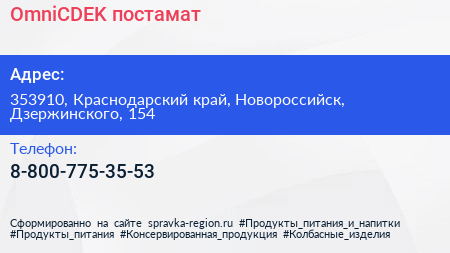 OmniCDEK, постамат по адресу 353910, Краснодарский край, Новороссийск, Дзержинского, 154 в дальнейшем Организация, размещена в следующих категориях: