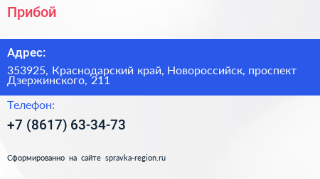 Прибой по адресу 353925, Краснодарский край, Новороссийск, проспект Дзержинского, 211 в дальнейшем Организация, размещена в следующих категориях: