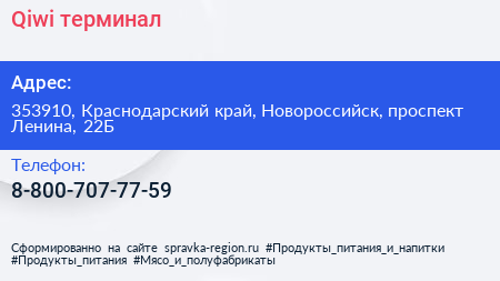 Qiwi, терминал по адресу 353910, Краснодарский край, Новороссийск, проспект Ленина, 22Б в дальнейшем Организация, размещена в следующих категориях: