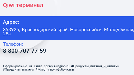 Qiwi, терминал по адресу 353925, Краснодарский край, Новороссийск, Молодёжная, 28а в дальнейшем Организация, размещена в следующих категориях: