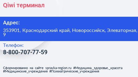 Qiwi, терминал по адресу 353901, Краснодарский край, Новороссийск, Элеваторная, 9 в дальнейшем Организация, размещена в следующих категориях: