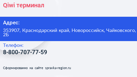 Qiwi, терминал по адресу 353907, Краснодарский край, Новороссийск, Чайковского, 2Б в дальнейшем Организация, размещена в следующих категориях: