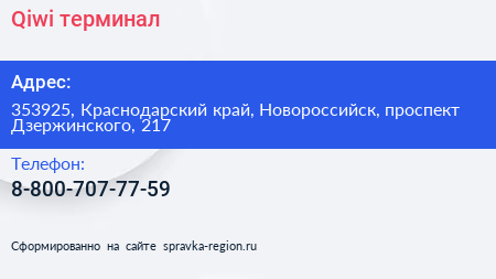 Qiwi, терминал по адресу 353925, Краснодарский край, Новороссийск, проспект Дзержинского, 217 в дальнейшем Организация, размещена в следующих категориях: