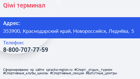 Qiwi, терминал по адресу 353900, Краснодарский край, Новороссийск, Леднёва, 5 в дальнейшем Организация, размещена в следующих категориях: