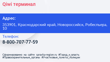 Qiwi, терминал по адресу 353901, Краснодарский край, Новороссийск, Робеспьера, 10 в дальнейшем Организация, размещена в следующих категориях: