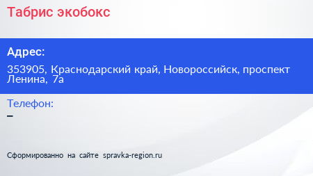 Табрис, экобокс по адресу 353905, Краснодарский край, Новороссийск, проспект Ленина, 7а в дальнейшем Организация, размещена в следующих категориях: