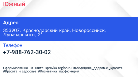 Южный по адресу 353907, Краснодарский край, Новороссийск, Луначарского, 21 в дальнейшем Организация, размещена в следующих категориях: