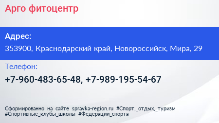 Арго, фитоцентр по адресу 353900, Краснодарский край, Новороссийск, Мира, 29 в дальнейшем Организация, размещена в следующих категориях: